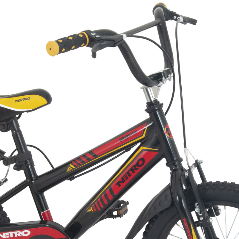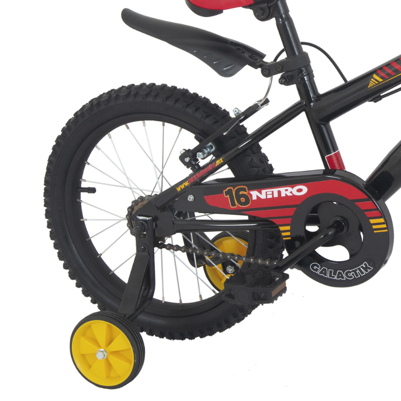 La bicicleta Nitro Galactik rodada 16 está diseñada como un vehículo de aprendizaje ideal para niños de entre cuatro y seis años combinando una estructura ligera con un diseño visualmente atractivo y dinámico.