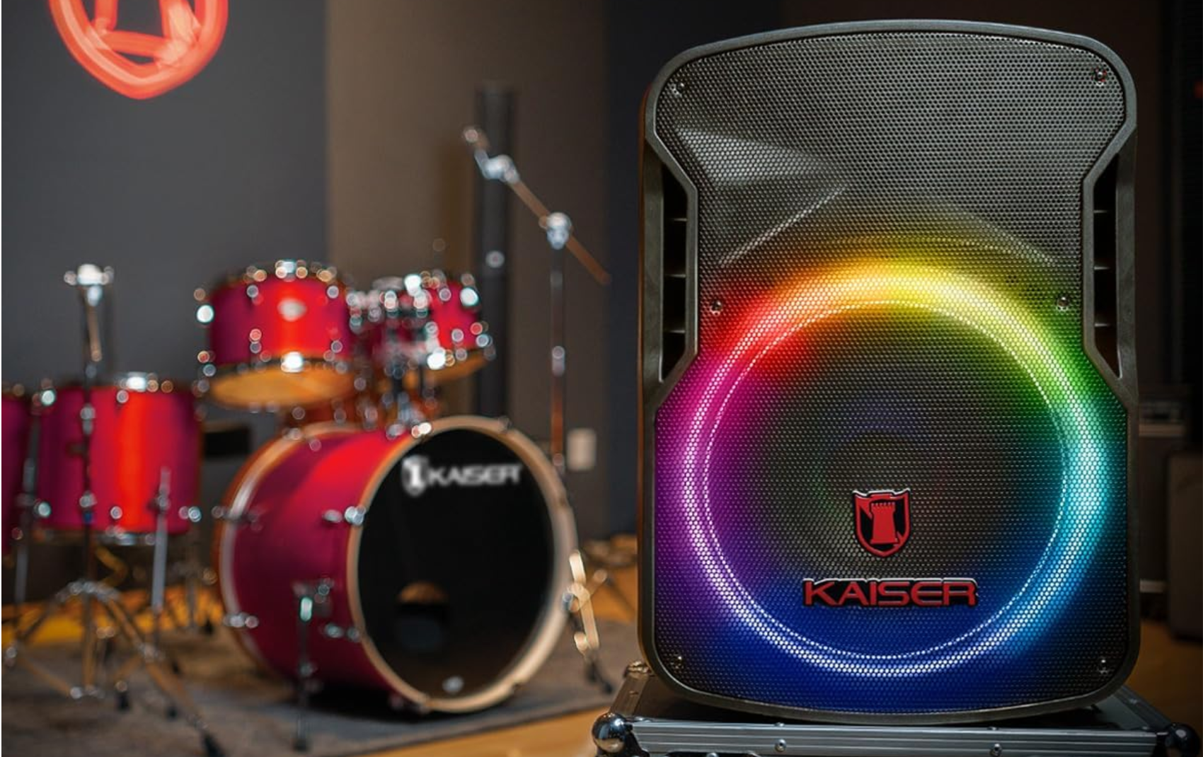 El bafle KAISER MSA-7515MX es un potente sistema de audio portátil con un altavoz de 15 pulgadas y una potencia de 30,000 W PMPO, ideal para músicos y eventos.