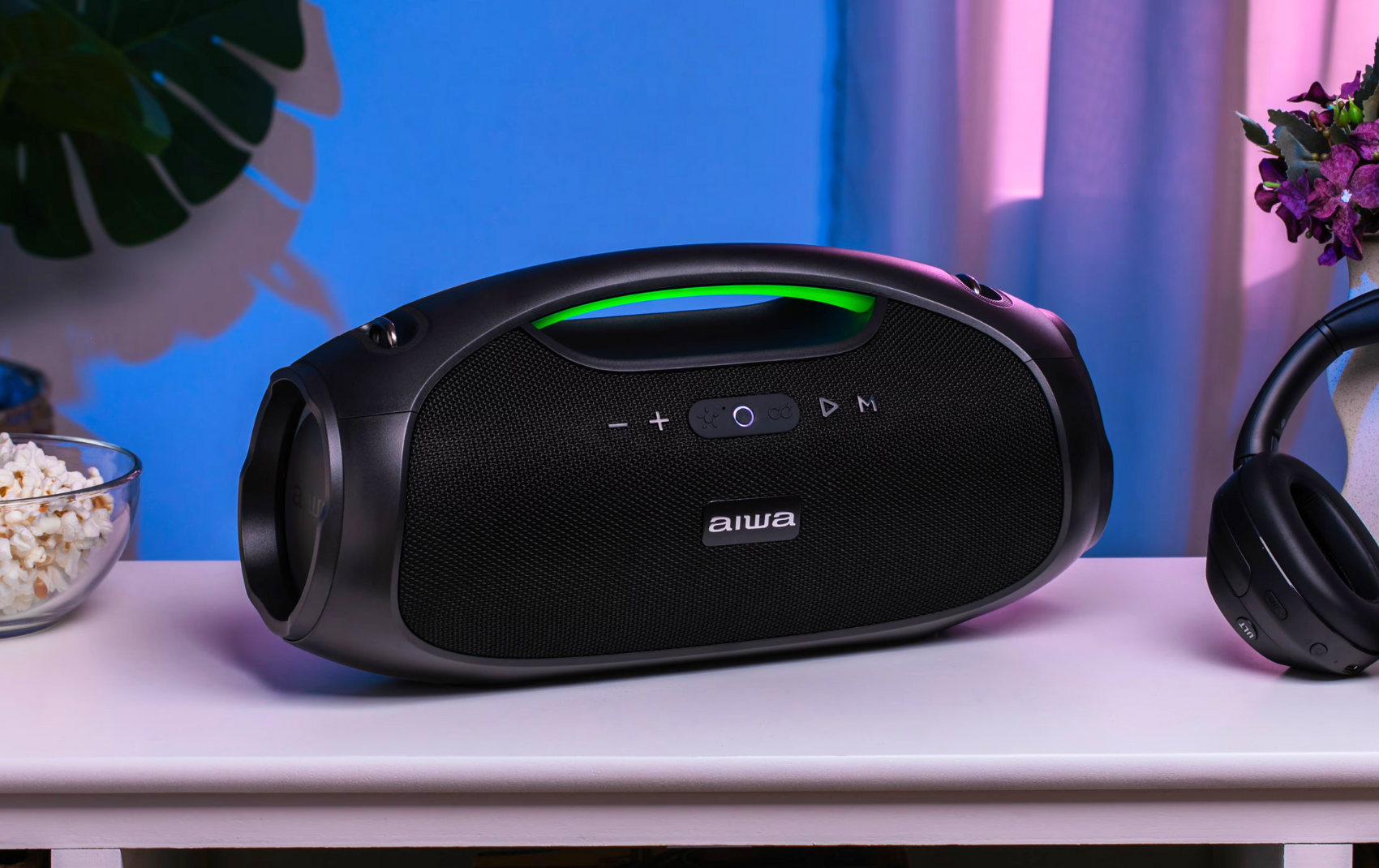 La bocina portátil AIWA AWS244BT es un potente sistema de audio con 60 W de potencia, diseñado para ofrecer sonido de alta calidad en un formato compacto y fácil de transportar.