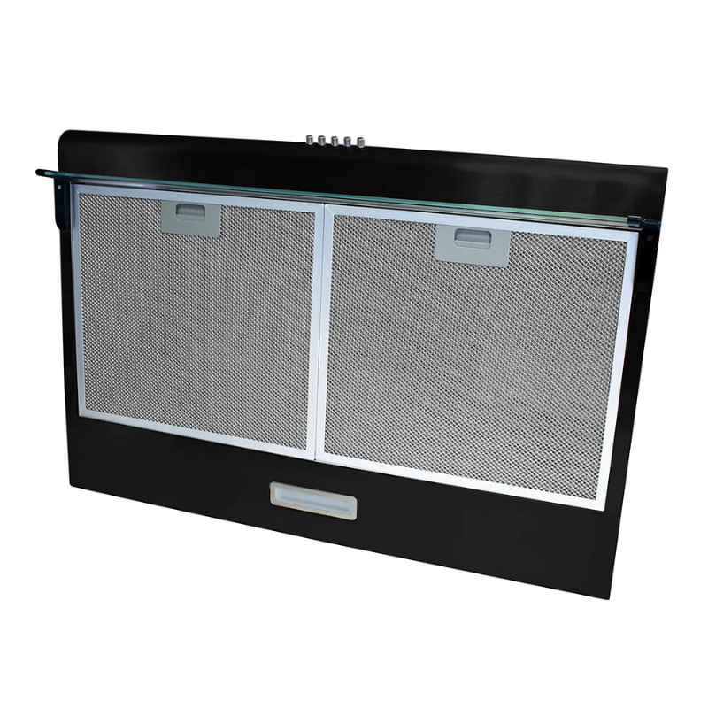 El principal atractivo de la CMK-76NV es su diseño estético, que combina el moderno color negro con una visera de vidrio. Este contraste visual proporciona un toque de sofisticación y distinción. Además, su tamaño de 76 cm (30 pulgadas) es ideal para armonizar con estufas de tamaño estándar, logrando una integración visual perfecta en cocinas de concepto actual.