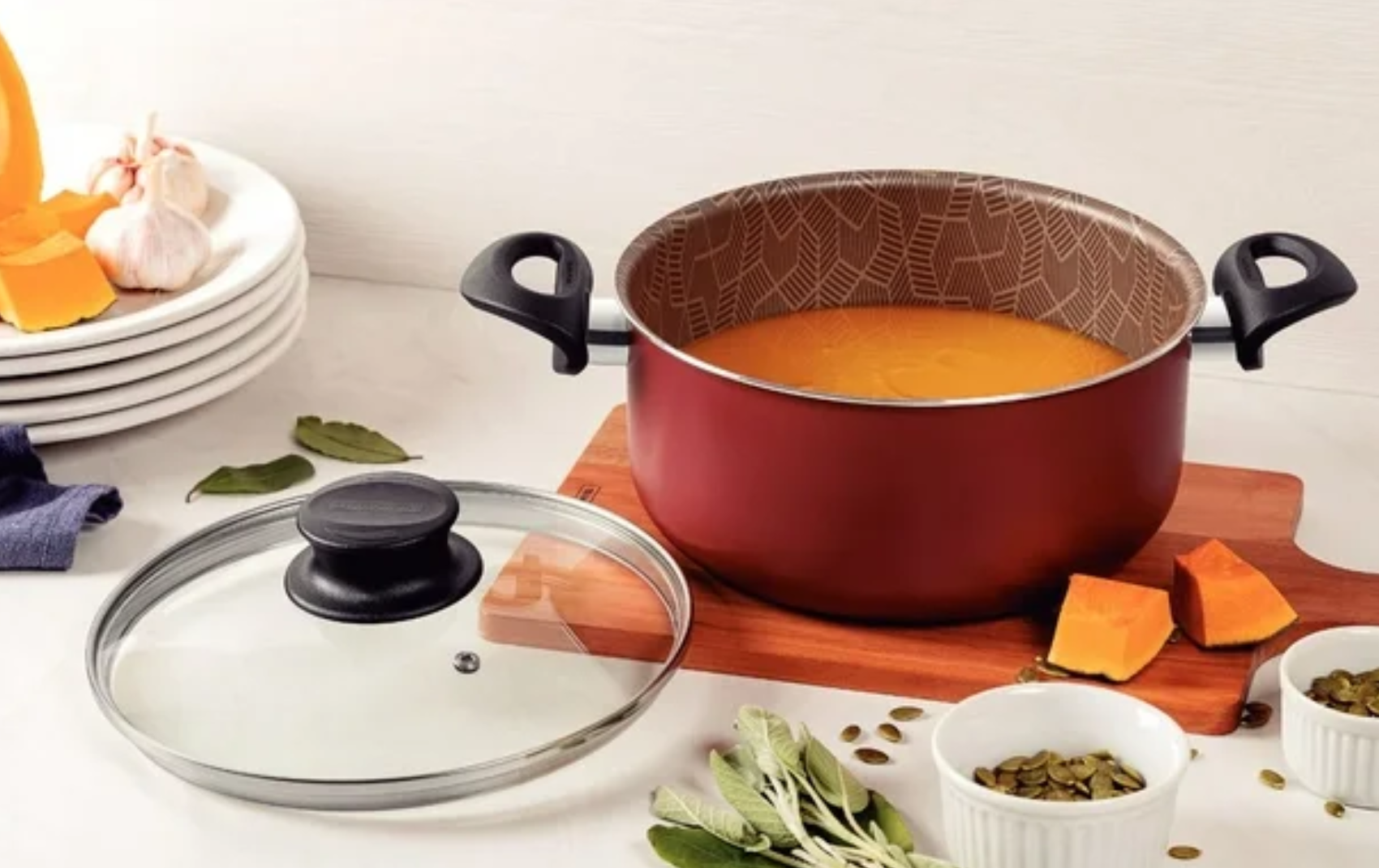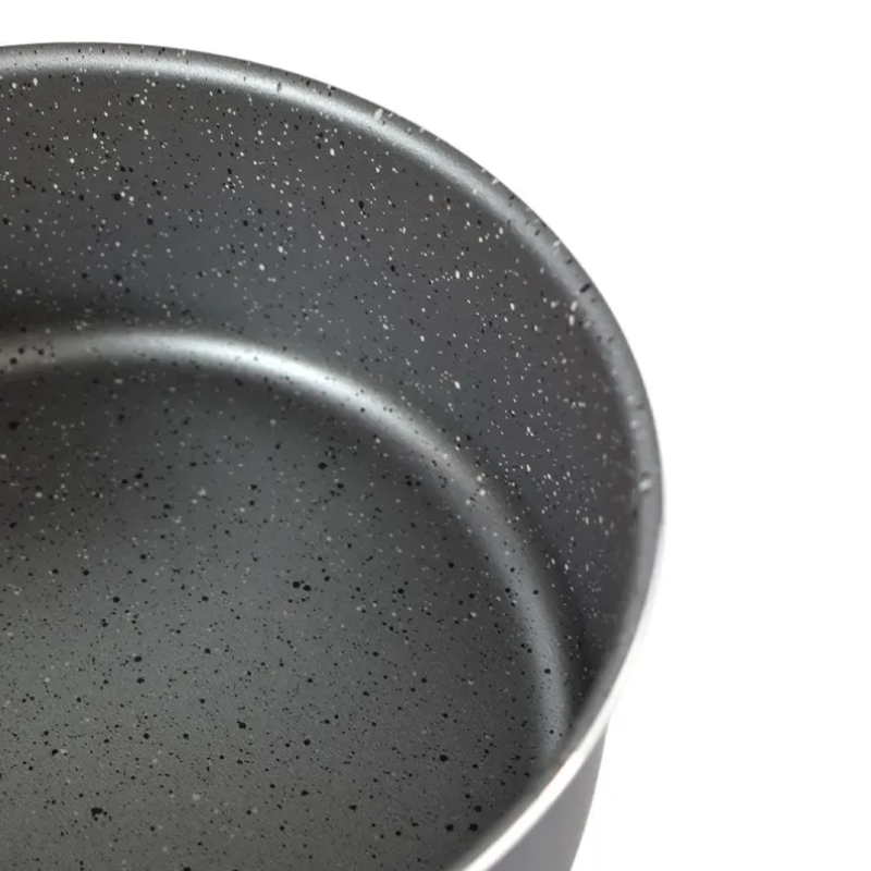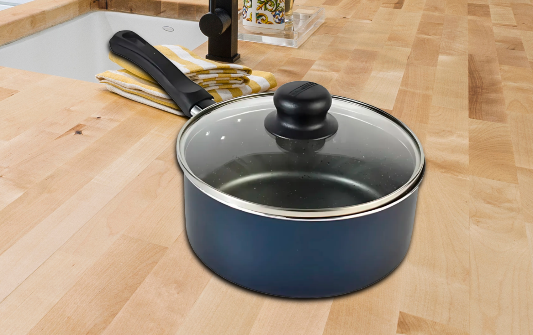 Este modelo incluye una tapa de vidrio templado que permite monitorear el proceso de cocción, combinando durabilidad y un diseño funcional ideal para porciones medianas y salsas.