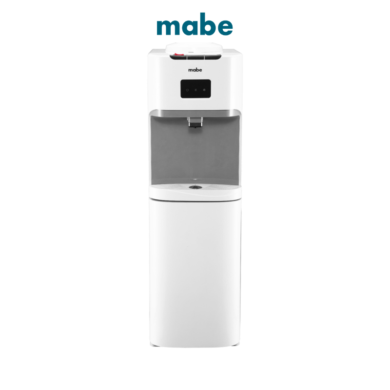 El enfriador MABE modelo EMDPCCB3 es un dispensador de agua de columna o piso (Free Standing) que se caracteriza por su versatilidad en la temperatura del agua. A diferencia de muchos modelos, este cuenta con tres llaves que ofrecen agua fría, caliente y templada/natural al instante. Opera con un sistema de enfriamiento por compresor para mayor eficiencia y durabilidad, e integra un práctico gabinete de almacenamiento en la parte inferior de su diseño en color blanco.