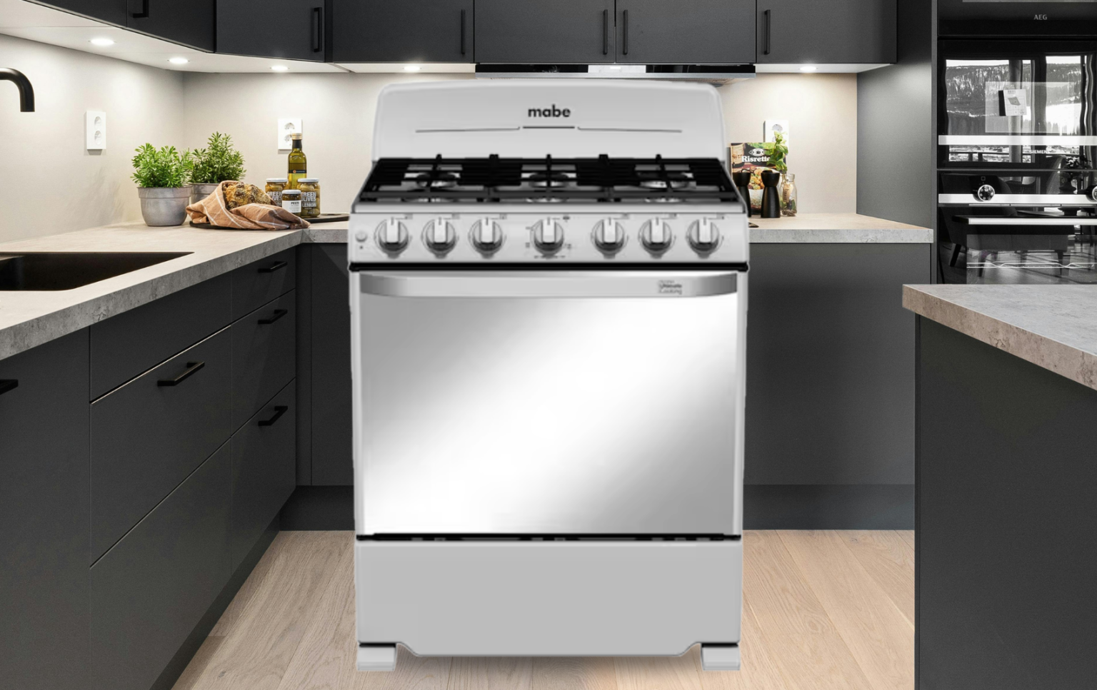 La MABE EM7647BFIS0 es una estufa de piso con funcionamiento a gas LP convertible a natural, equipada con 6 quemadores y un diseño moderno, ideal para cocinas de tamaño mediano a grande que requieren versatilidad y eficiencia en la cocción diaria.