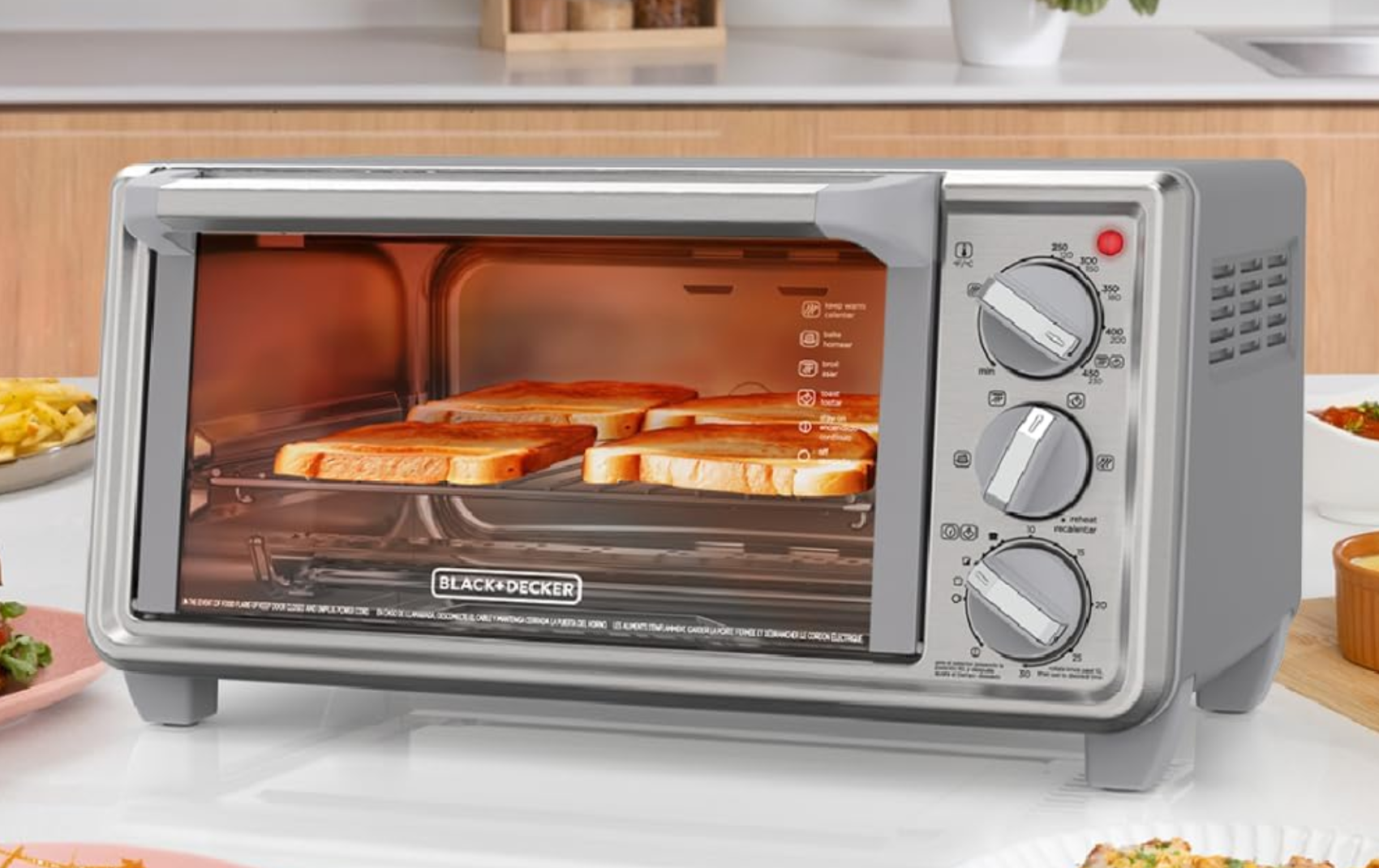 El horno tostador BLACK+DECKER es un electrodoméstico compacto y potente con 1150 watts diseñado para realizar tareas de horneado tostado y recalentado de manera eficiente en cualquier cocina.