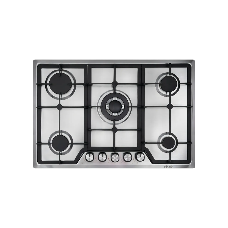 La RIVEL 5RIV-CIX75 es una parrilla de diseño contemporáneo con una cubierta de acero inoxidable que le proporciona una apariencia elegante y fácil de integrar en cocinas modernas. Es un modelo amplio, de 75 cm, que se instala sobre la cubierta o se empotra en el área de la estufa. Su superficie de acero y sus parrillas de hierro fundido combinan durabilidad con un atractivo visual profesional.