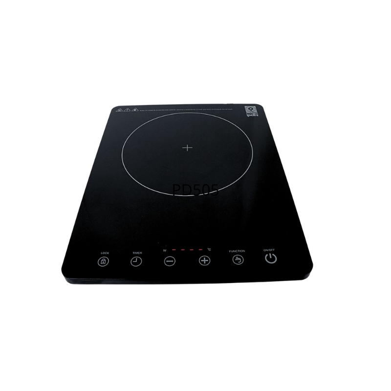 El control de la cocción en el PD505 es digital y preciso. El equipo opera con un Panel de Control Táctil (Touch Control) que ofrece varios Niveles de Potencia/Temperatura para ajustar la cocción. Además, incluye funciones programables como un Temporizador y mecanismos de seguridad clave, como el Detector de Sartén (que solo funciona si hay un recipiente compatible) y protección contra sobrecalentamiento.