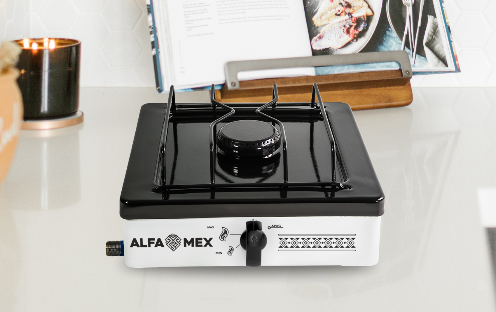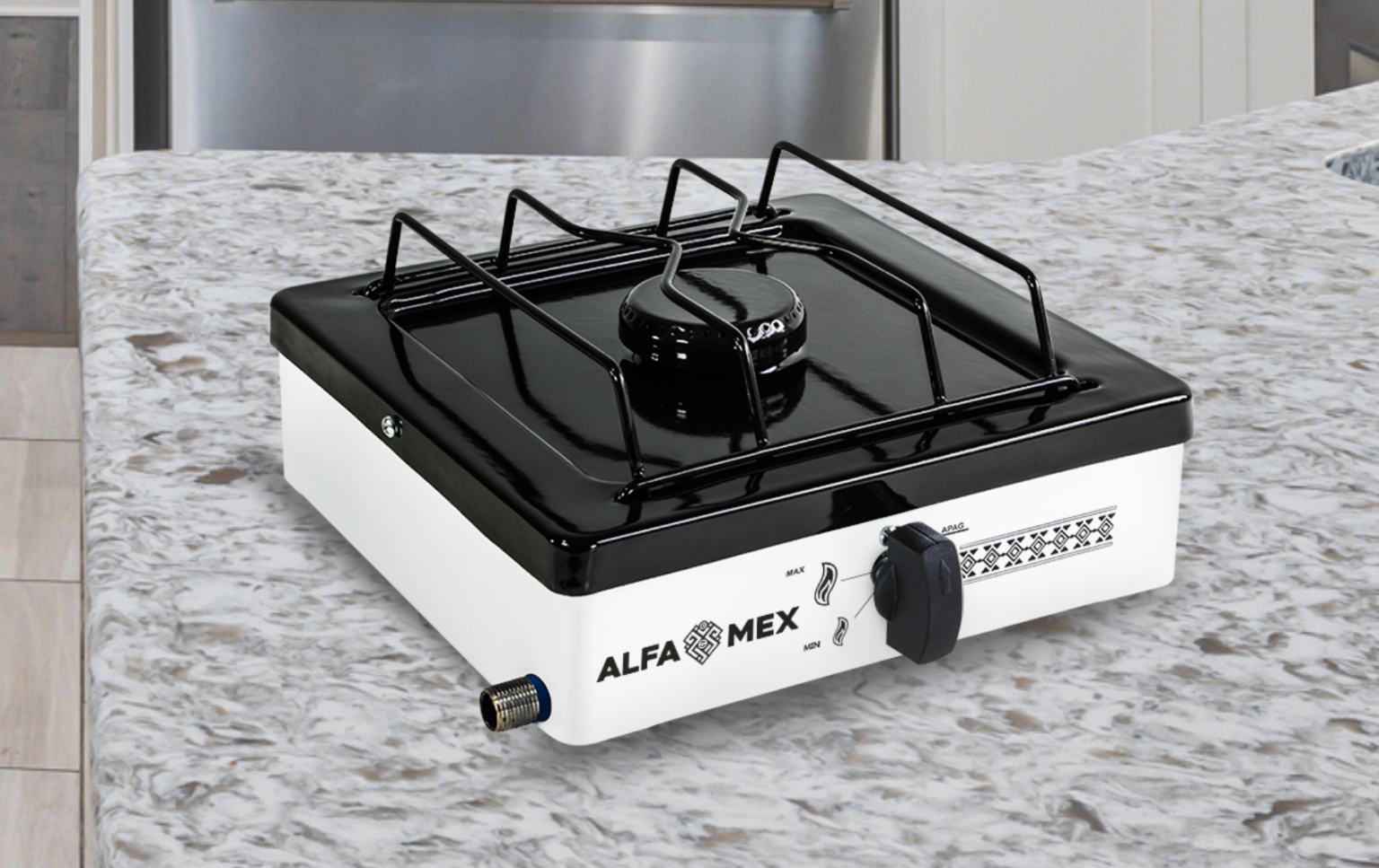 La parrilla de sobremesa ALFAMEX modelo 603 es una estufa compacta y segura, ideal para espacios reducidos o para ser utilizada como auxiliar. Cuenta con un solo quemador y está diseñada para operar con gas LP.