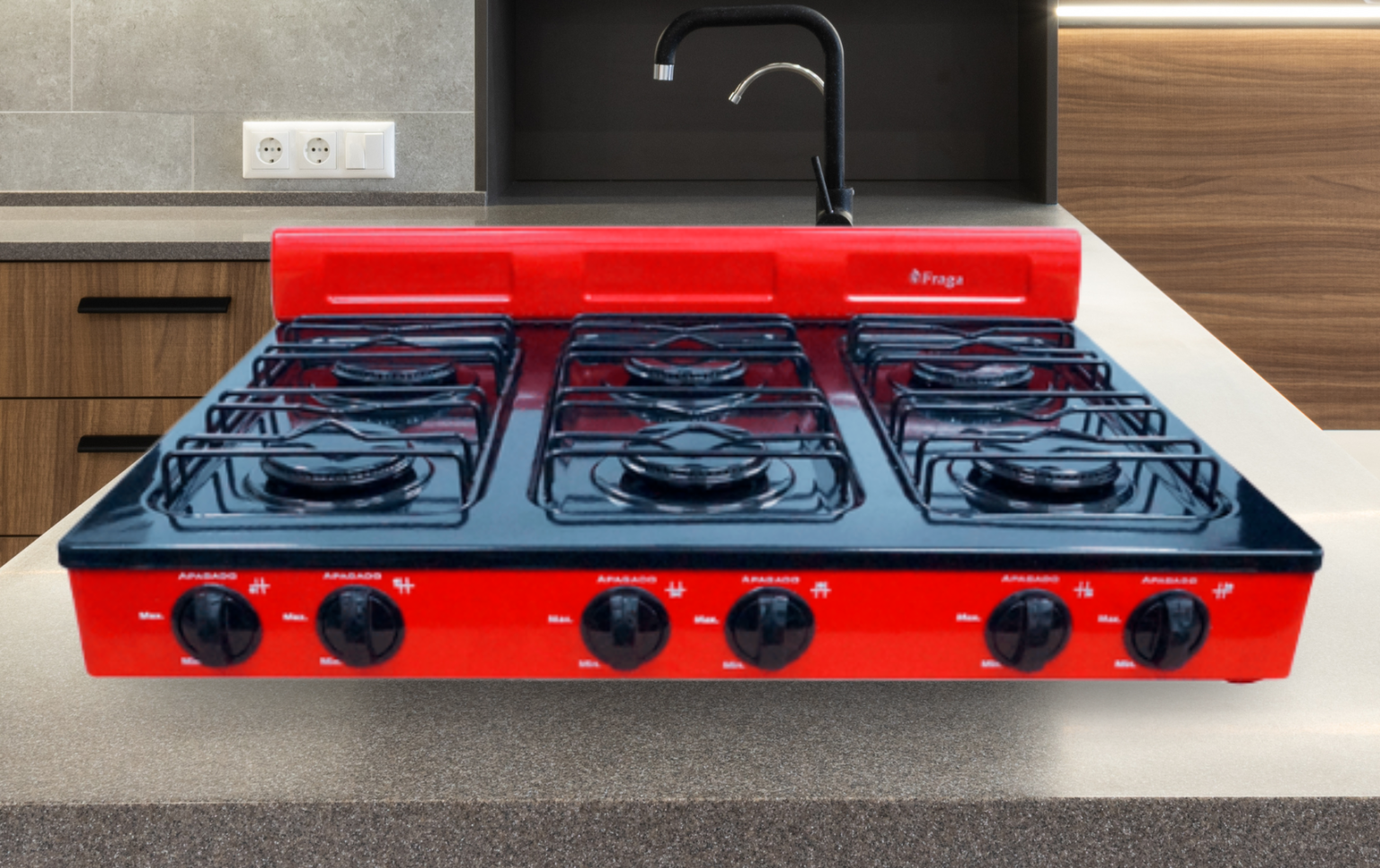 La principal característica de la FRAGA P330 es su excepcional capacidad de cocción, al integrar seis quemadores de lámina porcelanizados en su diseño de sobremesa. Este número de hornallas la convierte en una solución de alto rendimiento, permitiendo la preparación simultánea de múltiples platillos, ideal para hogares grandes o eventos con alta demanda.