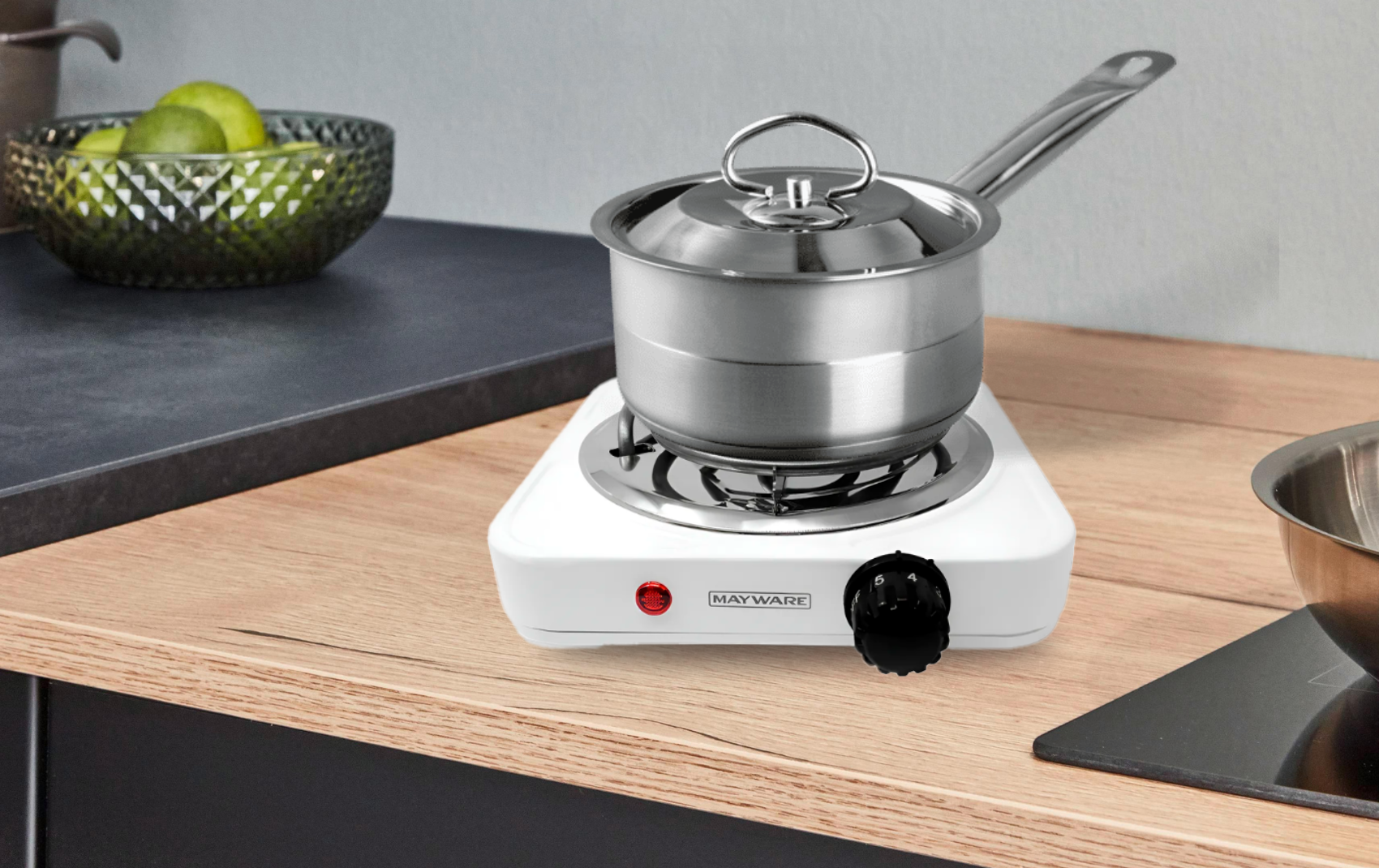 La parrilla MAYWARE HY1000A es un electrodoméstico de cocción eléctrico individual y portátil, caracterizado por su diseño con una resistencia en espiral que proporciona calor directo y uniforme. Es ideal para preparar platillos o calentar alimentos en porciones pequeñas.