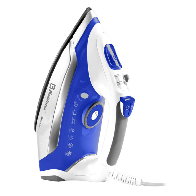 La Koblenz PKK-850 SAR es una plancha de vapor con 1800 W de potencia, que ofrece funciones avanzadas como Golpe de Calor, Vapor Vertical y Rociado Fino para eliminar arrugas difíciles.