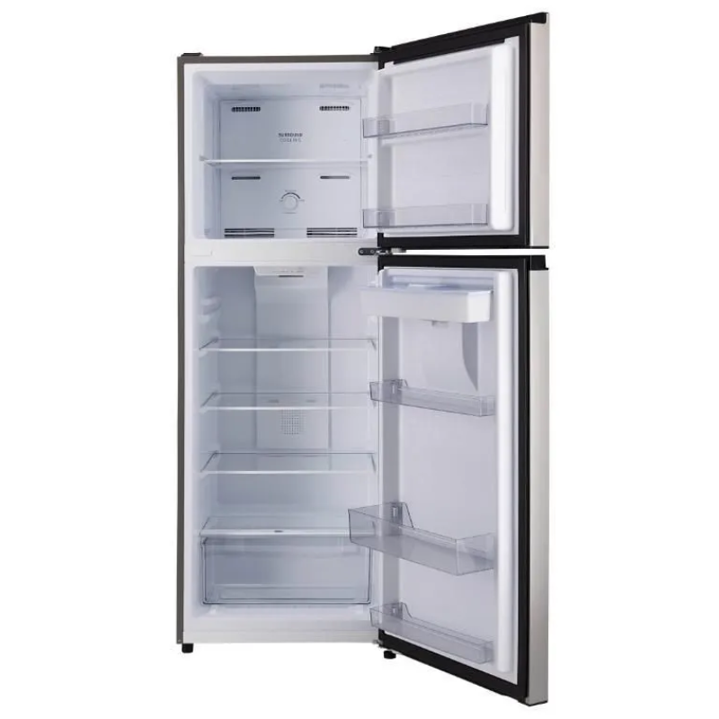 El WINIA WRT1100WATGD es un refrigerador Top Mount (congelador en la parte superior) de 11 pies cúbicos de capacidad, ideal para espacios medianos o pequeñas familias, que combina eficiencia en el almacenamiento y un diseño moderno en color gris oscuro.
