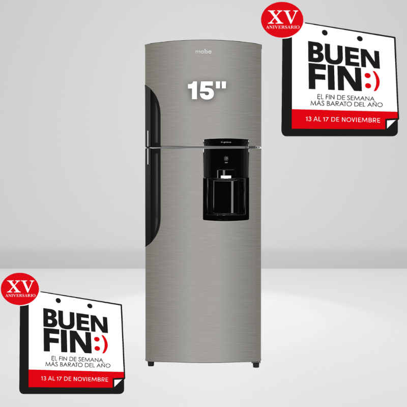 El MABE RMS400IAMRM0 es un refrigerador Top Mount (congelador superior) de 15 pies cúbicos (aproximadamente 400 litros), diseñado para familias que necesitan una gran capacidad de almacenamiento con eficiencia y estilo. Su tecnología Total Fresh Flow asegura un enfriamiento óptimo en todo el espacio.