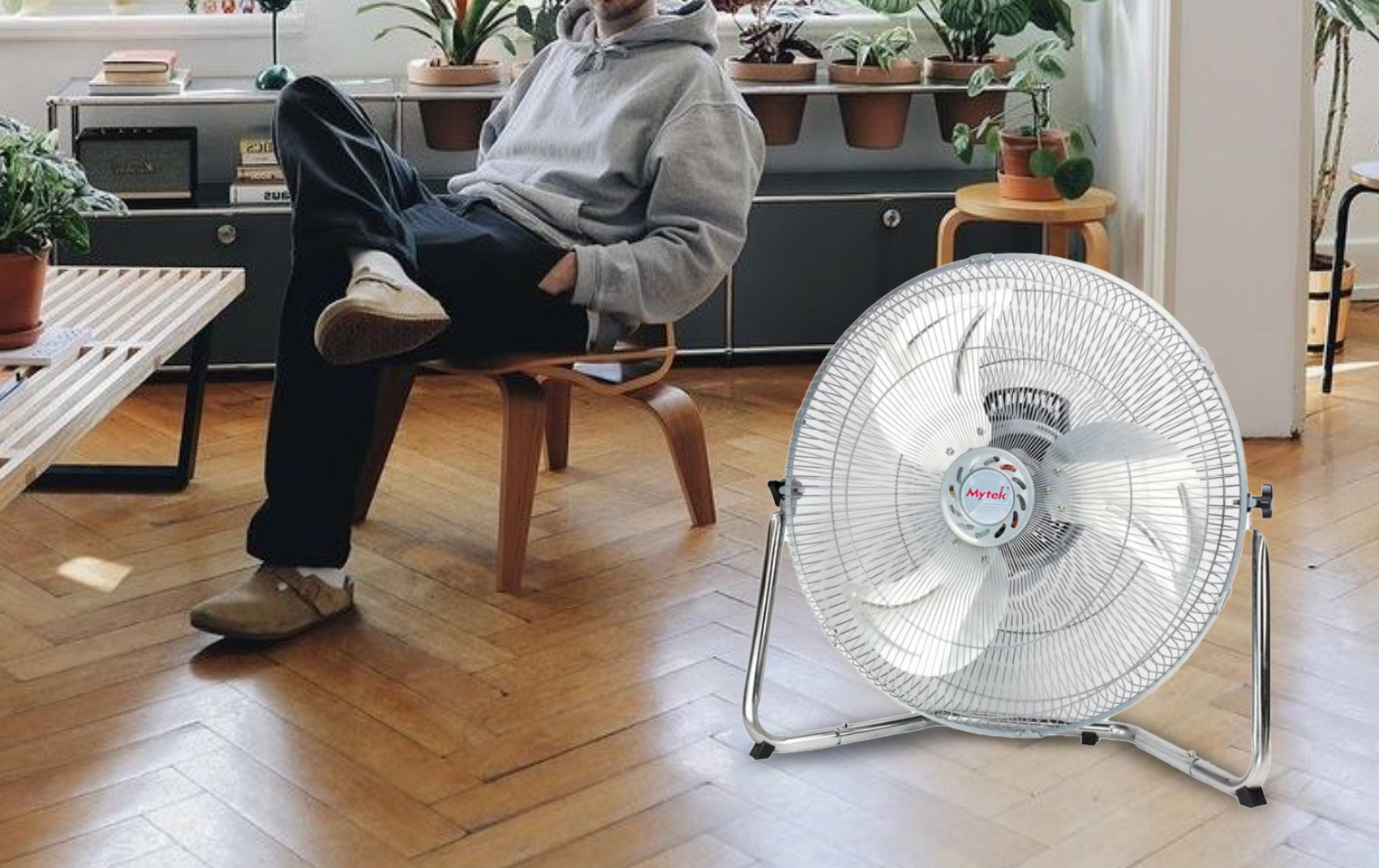 El ventilador de piso Mytek de 16 pulgadas está construido con una estructura metálica de alta resistencia que garantiza estabilidad y durabilidad en entornos de uso constante.